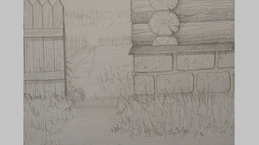 Художник Степан Каширин. "Угол дома".(30x20см.) Бумага, карандаш.1991год.