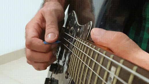 При игре возможны варианты ударов при использовании различных углов удара. Струну можно атаковать прямо, либо под углом по отношению к длине струны. Таким образом возможны следующие варианты: 2. Медиатор, направленный «передним» (ближним к грифу) краем вниз. Самый распространённый вариант. В силу распространённости может создаться впечатление, что это единственный правильный угол. Примеры этого хвата: Paul Gilbert, Yngwie Malmsteen, Al di Meola. (Пример 2) Лично я в большинстве случаев предпочитаю этот хват...