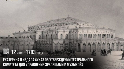 12 июля 1783 года Екатерина II издала «Указ об утверждении театрального комитета для управления зрелищами и музыкой»