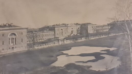 Художник Уранова изобразила Высшее техническое училище, бывший Слободской дворец. Вы узнали Бауманский институт и 2 Бауманскую улицу. Тогда она называлась Коровий брод и была весьма грязная. Николай Жуковский долгие годы здесь преподавал...
