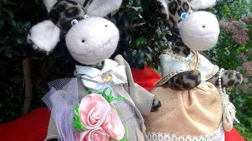 Однажды, однажды, Однажды, однажды Гуляли жирафы По улице важно. Э. Успенский https://poemata.ru/poets/uspenskiy- eduard/zhirafy/ Как в стихотворении Эдуарда Успенского, моя пара жирафов выглядит нарядно и празднично. В самый раз для прогулки и свидания. Расскажу историю создания этой пары игрушек. Обратился ко мне молодой человек, посоветоваться по поводу подарка на день рождения своей возлюбленной. Оказалось, что она любит жираф и собирает коллекцию с этими грациозными животными...