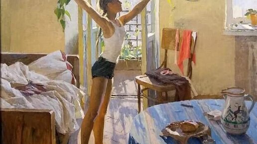 Мальчик увидел девочку на картине "Утро", вырос и женился на ней... "Утро" - картинка из учебника. Картина была помещена в учебнике русского языка. На картине изображена тоненькая девочка в залитой светом комнате, делающая зарядку, весь день у неё впереди, вся жизнь… Школьники писали по этой картине сочинения, придумывали для девочки имя, родителей, занятия… Некоторые думали: интересно, как всё сложится у неё, когда она станет взрослой? А сложилось все самым лучшим образом!