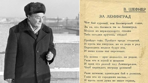 110 лет назал родился Вадим Сергеевич Шефнер (12 января 1915 (30 декабря 1914 ст.стиля) — 5 января 2002) — прозаик, поэт и переводчик, журналист, фронтовой корреспондент, участник Битвы за Ленинград. Имя Вадима Шефнера будут помнить столько, сколько будет жить Память о защитниках города на Неве, потому как на удостоверении к медали "За оборону Ленинграда" напечатано его стихотворение! Редчайший в Истории случай. В своей автобиографии поэт писал: “Рождён я в Петрограде 12 января 1915 г. Мать моя, Евгения Владимировна Шефнер, — дочь вице-адмирала Владимира Владимировича фон-Линдстрема...