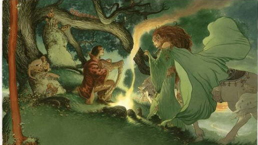 Александра Пустовойт художественно излагает красивую переведённую шотландскую легенду XVIII века. Технический перевод сказки можно также найти по ссылке. Давным давно в замке Эрсилдун, что в Эйлдонских холмах, жил один славный шотландский лорд по имени Томас Лермонт. Лучше всех в округе он умел сочинять изящные стихи и играть на арфе, за что прозвали его Томас-Рифмач. В одно чистое майское утро Томас покинул башню Эрсилдун и отправился бродить по лесу близ ручья Хантли, и остановился отдохнуть под старым дубом...