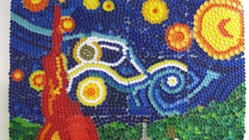 "Звездная ночь" Ван Гога из крышек от бутылок