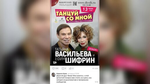 Народная артистка России Татьяна Васильева отреагировала на призыв директора Театра им. Вахтангова Кирилла Крока, адресованный юмористу Ефиму Шифрину, отказаться от гастролей с ней. Крок назвал Васильеву «нерукопожатной в театральном сообществе». «Это удар сзади. Так ударяют не то чтобы подонки, но неприличные люди. Это своего рода месть за то, что я имею своё мнение. А вообще, по большому счёту я та кошка, которую не интересует, что о ней думают мыши», – сказала в интервью «Абзацу» Васильева. Актриса не стала предполагать, какой будет реакция Ефима Шифрина после предостережения Крока...