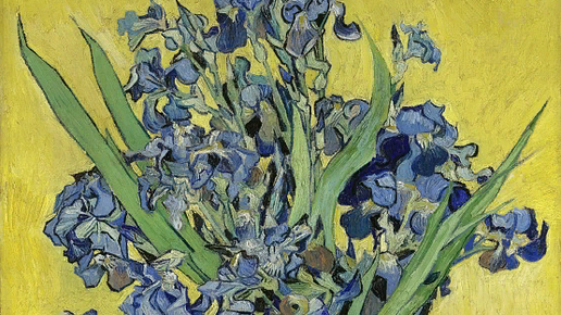 Ван Гог создал натюрморт "Ваза с ирисами на желтом фоне" перед тем, как покинуть больницу в Сен-Реми, где он провёл тяжелые и долгие 53 недели. На этом полотне Ван Гог стремился добиться мощного цветового контраста. Поместив цветы на жёлтый фон, он заставил их декоративные витиеватые формы выделяться еще сильнее. Изначально ирисы были фиолетовыми...