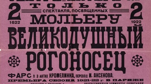 25 апреля 1922 года состоялась премьера «Великодушного Рогоносца». Этот французский фарс Кроммелинка, подготовленный Мейерхольдом с его учениками в классах «вольных мастерских», оказался спектаклем выдающимся в истории русского театра и в истории театра вообще. В творческой биографии Мейерхольда это было одно из самых прекрасных и совершенных его созданий. «Великодушный Рогоносец» был первой и блестящей демонстрацией мастерства актёров мейерхольдовской школы. Наконец-то старый девиз условного театра — «Слова — только узор на канве движений» — был осуществлен в художественно убедительных формах...
