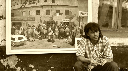 Про свою картину "Очередь" (первоначальное название "Город Данилов. 71-я година Октября") я писал и рассказывал уже много. Но, поскольку директор Даниловской художественной галереи Людмила Головкина снова достала её из своего фонда (на самом деле авторскую довольно свободную копию чуть меньшего размера) и показала её на очередной выставке, то я решился написать о ней, разумеется, об оригинале, ещё раз, теперь, наверное, последний раз, ибо сейчас я постараюсь вспомнить все события, связанные с созданием...
