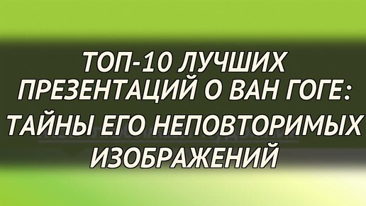 ТОП-10 лучших презентаций о Ван Гоге: Тайны его неповторимых изображений