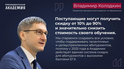 Владимир Колодкин, проректор Президентской акдемии, рассказал об особенностях приёма на платное обучение в 2025 году