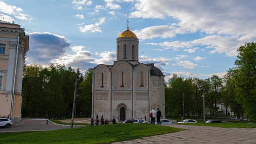 Дмитриевский собор - действующий православный храм во Владимире. Канонический пример крестово-купольного белокаменного храма владимиро-суздальской архитектурной школы. Знаменит своей белокаменной резьбой - его стены украшают около 600 рельефов, изображающих святых, мифических и реальных животных. Большинство рельефов сохранились в первоначальном виде, некоторые были заменены при реставрации XIX века (практически точными копиями). Прославление княжеской власти было главной идеей фасадной скульптуры...