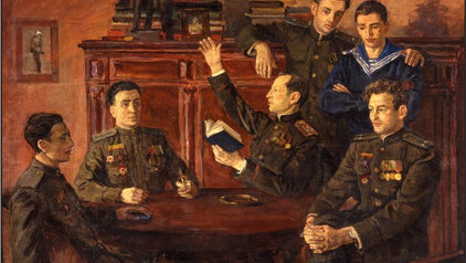 Групповой портрет потомков А.С.Пушкина — участников Великой Отечественной войны . Картина члена-корреспондента Российской академии художеств, народного художника РФ, подполковника в отставке Владимира Ивановича Переяславца «Групповой портрет потомков А.С. Пушкина – участников Великой Отечественной войны» (1957 г...