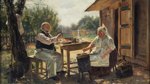 Продолжим рассмотрение жанровых картин художника. Маковский часто писал идиллические сценки, согретые добродушным и безобидным юмором. Такова его картина "Варят варенье". В картине легкий комизм всей сценки заключён в той важной серьёзности, с какой люди предаются своему занятию. Характеристики очень метки. Сосредоточенное лицо старика, вынимающего косточки из вишен, жест его рук, типичная для дальнозоркого человека поза схвачены чрезвычайно живо. По всему видно, что это человек мягкий, покладистый...