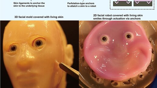 На этот раз сбылось предсказание о живородящих материалах или попросту живородах, которые описывались с нарастающей жутью в нескольких антиутопических книгах Владимира Сорокина, начиная со "Дня опричника". Команда исследователей под руководством профессора Сёдзи Такеучи из Токийского университета представила лицо робота, покрытое тонким слоем "живой" кожи. Она способна восстанавливаться после повреждения почти как человеческая кожа при заживлении ран и способна реконфигурироваться, передавая улыбку ...