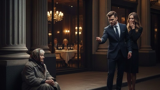 Старушка просила милостыню у дорогого ресторана, а богатый парень швырнул в неё мелочью и посмеялся.