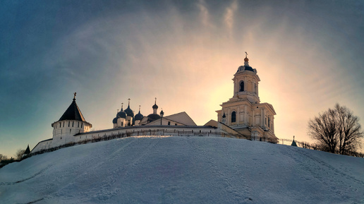 Высоцкий монастырь, что в городе Серпухове под Москвой. Основан в 1374 году Серпуховским князем Владимиром Андреевичем Храбрым - один из старейших на Руси и в Подмосковье. Входит в число девяти обителей, основанных по благословлению преподобного Сергия Радонежского. Центр паломничества к иконе Божией Матери «Неупиваемая Чаша». Находится на берегу реки Нары на холме именуемом - Высокий. Отсюда и название - Высоцкий монастырь. Был здесь во все времена года. Специально приезжал сюда зимой перед восходом солнца, чтобы сделать вот такой снимок - "СИЯЮЩИЙ ГРАД НА ХОЛМЕ"...