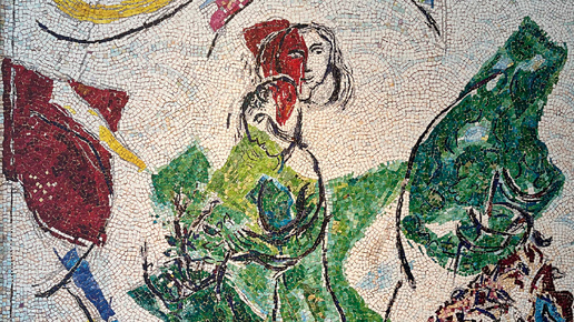 Первая мозаика, созданная Марком Шагалом и Лино Мелано, «Влюблённые», была задумана для Фонда Маг в Сен-Поль-де-Ванс. Фонд, открытый 28 июля 1964 года, возник из дружбы коллекционеров и галеристов Маргарит и Эме Маг с крупнейшими художниками XX века. Эме Маг впервые встретился с Марком Шагалом в октябре 1947 года на вернисаже его ретроспективной выставки в Музее современного искусства города Парижа. Эту выставку организовал Жан Кассу — как акт провокации и одновременно празднования возвращения художника после его лет изгнания в США...