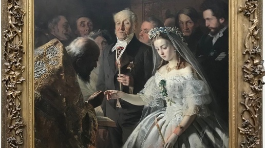 Начнём с необычной детали картины Василия Пукирева «Неравный брак». Она поможет нам ответить на вопрос, почему же это шедевр. Замечали ли Вы раньше, что на картине три невесты? По крайней мере три женщины, на которых надеты венки невесты. Да, сама главная героиня вот-вот станет супругой пожилого мужчины. Но обратите внимание, что рядом с женихом, буквально за его плечом стоит дама. Часто ее называют свахой. Тогда почему же на ней венок невесты? И стоит она как будто в белом одеянии... Но есть ещё одна женщина с венком на голове...
