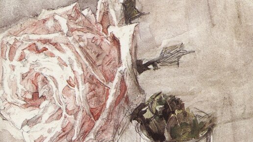 Одна из таких – «Роза в стакане» Михаила Врубеля, написанная простыми графитовыми карандашами. Нежный цветок стоит в стакане, наполненном водой. Его недавно сорвали, и он не утратил своей свежести. Но век срезанной розы недолог. Остаётся лишь наслаждаться её видом и ароматом, пока она полностью не завянет.