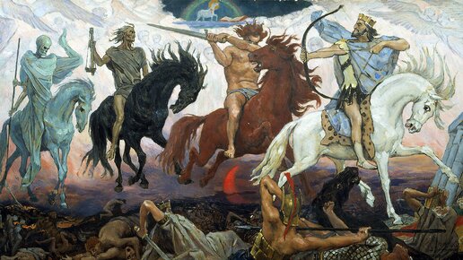 В 1887 году русский художник Виктор Васнецов написал картину, которая никого не может оставить равнодушным. Это "Четыре всадника апокалипсиса". На картине размером 136 х 72 см изображены четыре всадника, о которых рассказывается в шестой главе Откровении Иоанна Богослова. В этой книге, которую также называют "Апокалипсис Иоанна", описываются многочисленные бедствия и катаклизмы, которые обрушатся на человечество перед вторым пришествием Иисуса Христа. Начало Апокалипсису положит последовательное появление четырех всадников, каждый их которых принесет людям определенную беду...