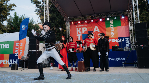 Замечательный московский уличный театр ”Высокие Братья & Tall Brothers” на Лыбедском бульваре в Рязани в рамках Третьего фестиваля креативных индустрий. Фото Дмитрия Барыкина. Фестиваль креативных индустрий...
