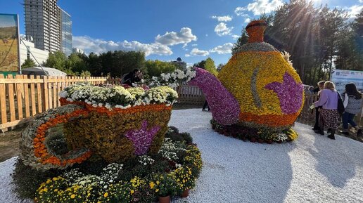 Накануне, 30 августа, в Набережных Челнах состоялся фестиваль цветов «Акварель — 2023». Так на мероприятии было представлено 20 объемных цветочных композиций. Они украшали проспект Хасана Туфана до самого входа на центральный майдан. В этом году композиции должны были соответствовать двум тематикам — году национальных культур и традиций и году педагога и наставника. Гости праздника увидели и школьный класс с учениками из цветов, и большую книгу в цветочном обрамлении, и школьную доску из натянутого коричневого тента...