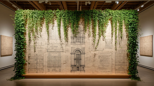 Архитектура чувств — как на выставке Вики чертежи и договоры проросли живым плющом • Без права на ошибку