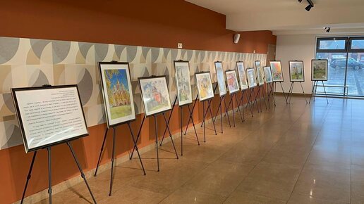 Экспозиция включает в себя 13 картин с изображениями храмов городского округа Домодедово. Все работы созданы учениками филиала «Созвучие» Домодедовской детской школы искусств.