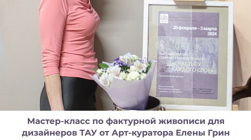 Арт-куратор Елена Григ (г. Санкт-Петербург) - выпускница Президентской программы подготовки управленческих кадров Тольяттинской академии управления - провела мастер-класс по фактурной живописи для студентов ТАУ. Участниками мастер-класса, который прошел в рамках дисциплины «Техники графики», стали студенты второго курса направления подготовки «Дизайн». Елена Григ - неординарный художник и известный специалист по организации выставок. На ее счету экспозиции в питерской Галерее современного искусства Алексея Сергиенко, в особняке Брюллова и других творческих резиденциях...