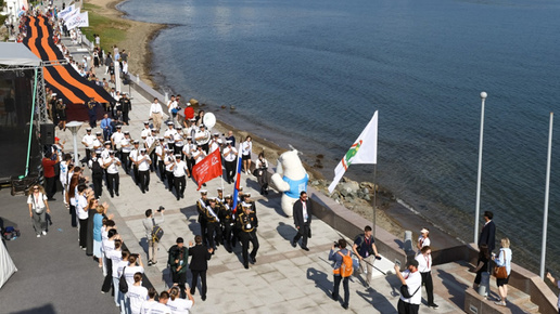 Выставка «Улица Дальнего Востока» на ВЭФ-2025 открылась шествием с 80-метровой георгиевской лентой