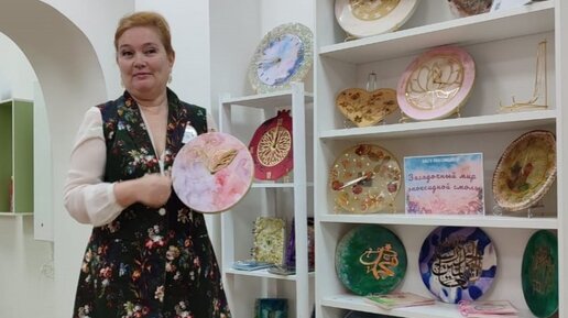 Автором экспозиции «Эстетика смолы» стала Ольга Волконидина. Астраханка состоит в местном клубе мастеров и часто представляет свои работы на городских ярмарках. Как рассказали в Центральной городской библиотеке, с эпоксидной смолой мастерица работает уже три года. Это сложная и необычная техника. «Эпоксидка» требует соблюдения специальной техники безопасности, при работе нужно надевать перчатки, респиратор и защитные очки. Зато из такой смолы можно изготовить уникальные предметы интерьера, украшения и даже обложки для блокнотов...