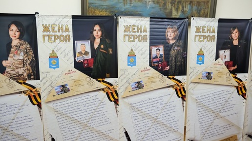 На ней представлены 30 портретов женщин, чьи мужья посвятили себя служению Родине. Уникальный проект «Жены героев» стартовал в сентябре 2022 года в Самаре по инициативе жены командующего 2-й армии Екатерины Колотовкиной. Он получил одобрение президента Владимира Путина и вскоре приобрёл всероссийский масштаб. В 2023 году к нему присоединилась Астраханская область. Проект «Жена героя – Астрахань» координирует Виктория Кравчук. За два года его участницами стали 92 жительницы региона. Группа фотографов, визажистов и стилистов бесплатно организует для жен и вдов военнослужащих фотосессию...