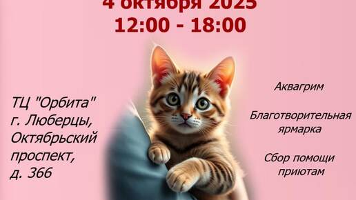 Выставка-пристройство кошек и котят из приютов пройдет в Люберцах 🐱 Выставка-пристройство кошек и котят из приютов «В добрые руки» пройдет в Люберцах 4 октября в ТРЦ «Орбита». Организатор мероприятия – благотворительный фонд «ДоброКот». 🎀 Все питомцы спасены с улицы, обработаны от паразитов, ухожены, здоровы, красивы, умны, привиты, умеют пользоваться лотком, готовы ехать домой. Взрослые кошки и коты стерилизованы и кастрированы. Если вы планируете выбрать котика, не забудьте с собой паспорт и переноску...