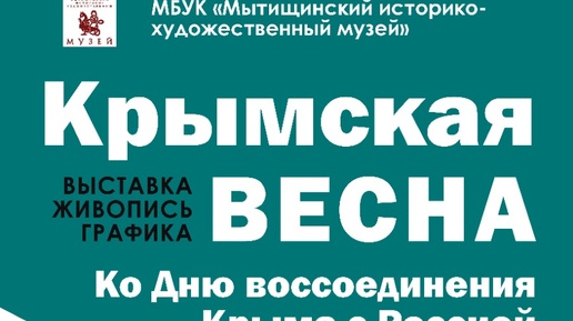 С 5 марта 2025 года в Мытищинском историко-художественном музее начнёт работу выставка Крымская весна, приуроченная ко Дню воссоединения Крыма с Россией. Совместный проект секции графики Московского областного отделения Союза художников Российской Федерации и Мытищинского историко-художественного музея. Крымский полуостров – уникальный природный регион с неповторимыми пейзажами, горными вершинами, бухтами и заливами на побережье Чёрного моря, занимает важнейшее место в истории нашей страны, в её культуре, литературе и искусстве...