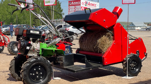 Пресс-подборщик для мотоблока на выставке. Обзор