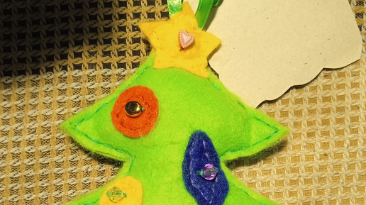 Всем привет! Сейчас я вам напишу статью об окончании второй четверти учебного года в третьем классе и о школьном конкурсе новогодних поделок. Для выставки с мамой сшили ёлку из фетра нитками. Старались все выходные. Сначала я покажу две детали ёлочки с пришитыми к ним украшениями. Вот одна сторона ёлки из фетра, где пришиты разноцветные шары и лошадка (ведь наступает Год лошади). Две детали пока в процессе сшивания. Мы подписали свою поделку на картоне и на ёлочные украшения из фетра пришили бусинки...
