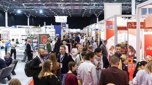Продовольственная выставка ПРОДЭКСПО 2025 в Москве. На выставке представлены стенды российских и зарубежных компаний.