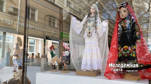 Выставка современных рукотворных кукол и игрушек «Куклы в городе». Авторские игрушки разместились за стеклами летней веранды ближайшего ресторанчика и прекрасно вписались в городскую среду.
