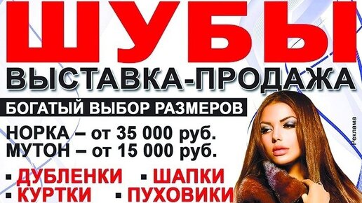Агрызские вести4 года назадПодписатьсяШУБЫ, ВЫСТАВКА-ПРОДАЖА✅ 25 и 26 августа выставка-продажа шуб. ✅ Богатый выбор размеров. ✅ Дубленки, куртки, шапки и пуховики. Реклама,12+ УБ