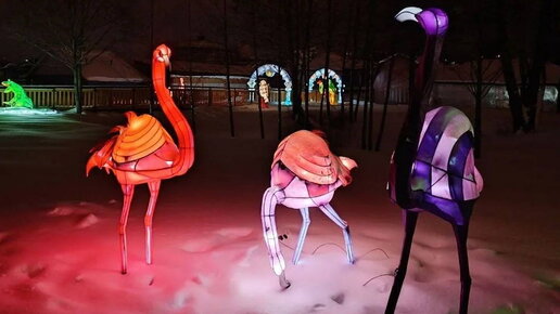 Некоторые композиции сопровождают звуковые эффекты. В зоопарке Минска открылась выставка световых фигур под названием "Ночная сказка". Как сообщается в Instagram-аккаунте учреждения, всего "зажглись" около 60 фигур. Экспонаты установлены на трех площадках, почти ко всем можно подойти и сфотографироваться. Некоторые фигуры объединены в композиции в сопровождении звуковых эффектов. Все экспозиции создавали из ткани, натянутой на стальные каркасы, которые раскрываются во всей красе благодаря специальной подсветке изнутри...