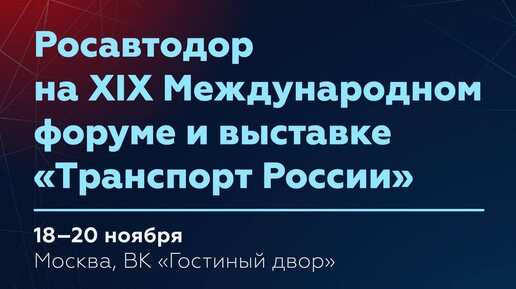 Встречаемся на XIX Международном форуме и выставке «Транспорт России» 18–20 ноября в Москве
