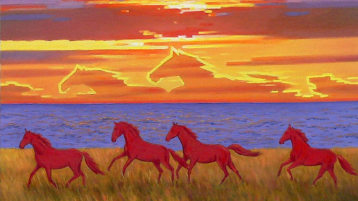 Красные кони на синей траве