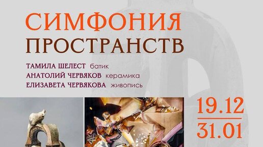 ✨ В экспозиции представлены работы трёх талантливых авторов. ✨ Анатолий Червяков — художник-керамист. Он создаёт мир разнообразных форм и объёмов, раскрывая красоту глины через декоративные пласты, вазы и фигуративные композиции. ✨ Тамила Шелест — художник по ткани, мастер техники батик. Каждое движение её руки требует предельной точности, а крупные полотна позволяют в полной мере оценить богатство и возможности этой уникальной техники...