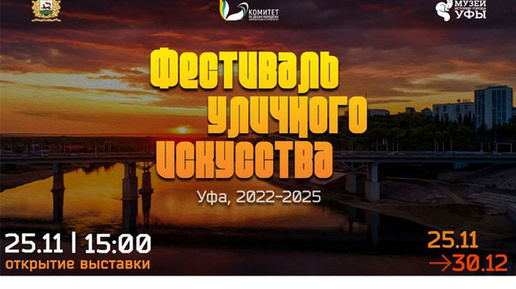 25 ноября в 15 часов в Музее истории Уфы откроется выставка «Фестиваль уличного искусства в Уфе». Мероприятие подведет итоги четырехлетней работы проекта, который преобразил города. Экспозиция собрала работы с фестиваля с 2022 года...