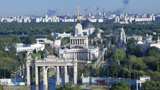Кира Навонина4 года назадПодписатьсяВид сверху на арку входа, здание Дома народов России и павильоны выставки ВДНХ
