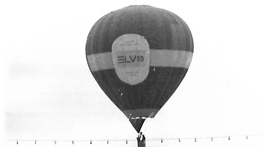 Воздушный шар над площадью Революции. Скорее всего конец 1990-х, но может и начало 2000-х. Снимок не особо хорошего качества, но левее памятника можно всё же различить технику и палатки. Проходит выставка, которая сейчас называется «Российский лес»...