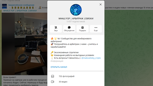 Канал WHALE P2P | АРБИТРАЖ | СВЯЗКИ подаётся как «№1 сообщество по межбиржевому арбитражу», где новичкам обещают быстрый старт, честные условия и чуть ли не корпоративный подход. Но проверка показала: за красивой упаковкой скрывается схема, где основной заработок идёт не от арбитража, а от ваших депозитов и комиссии с вашего оборота. 👉 Кстати, вот проверенный способ заработать без подобного развода. 📖 Обзор проекта Канал выглядит аккуратно, оформлен красиво и подаётся как серьёзная организация...