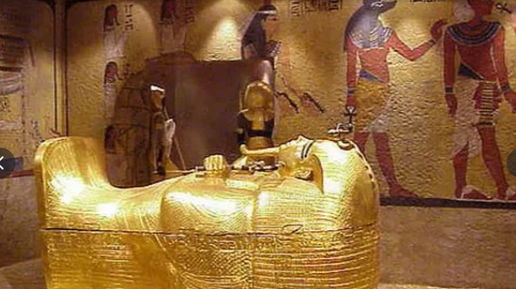 Только в январе 1925-го года, через 2 года после своего знаменитого открытия усыпальницы фараона Тутанхамона, археолог Говард Картер смог продолжить исследования, начатые в 1922г. Внутри кварцитового саркофага (а - на схеме) исследователей ждало три антропоморфных (повторяющих линии человеческого тела) саркофага и мумия внутри последнего. Однако учёным здесь пришлось остановиться, им предстояло разобрать и вынести части ковчегов и другие артефакты, обнаруженные в прихожей комнате — всего около трёхсот предметов, которые были пока сложены в погребальном покое...