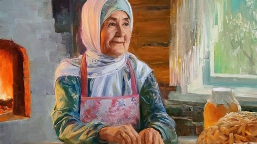 Заслуженный художник Татарстана Ильдус Муртазин изобразил на картине 70-летнию волонтерку из села Верхние Челны Изалию Хайруллину. Работа называется «Чак-чак для защитников», сообщает «Татар-информ».